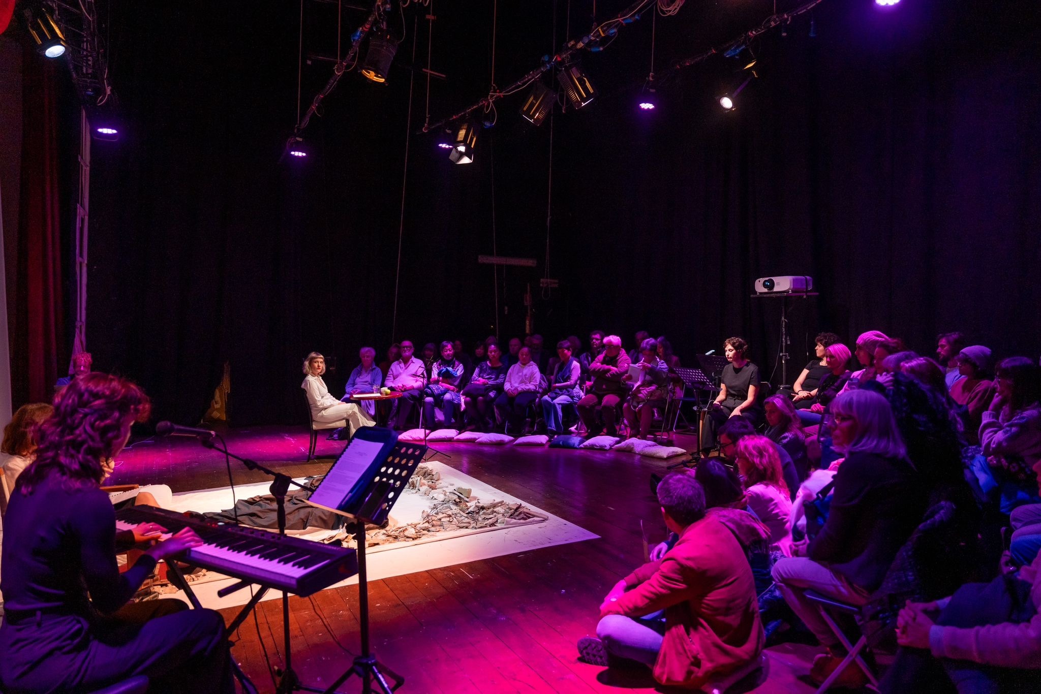 This residency marked the first stage of a broader artistic journey, offering an opportunity to share the creative process with the audience and explore how sound can shape the emotional and narrative texture of a theatrical work.